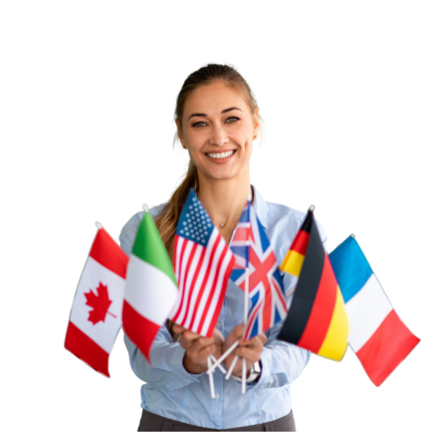 Inglês, Francês, Espanhol, Alemão